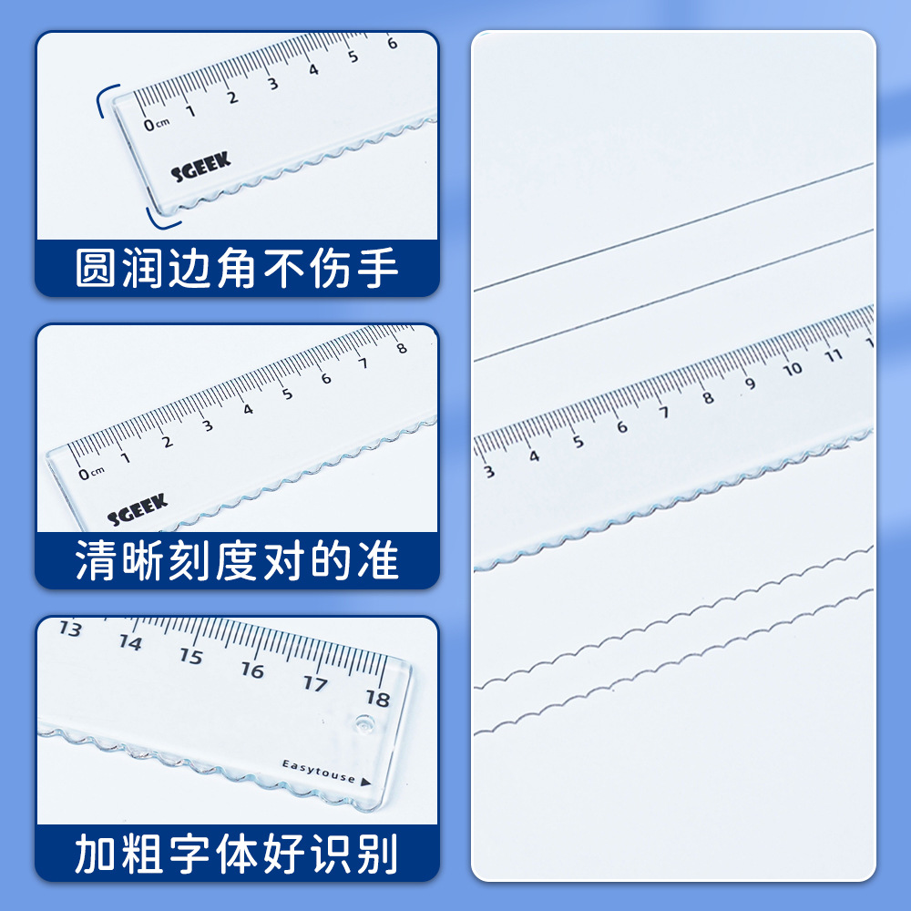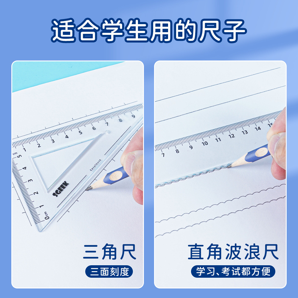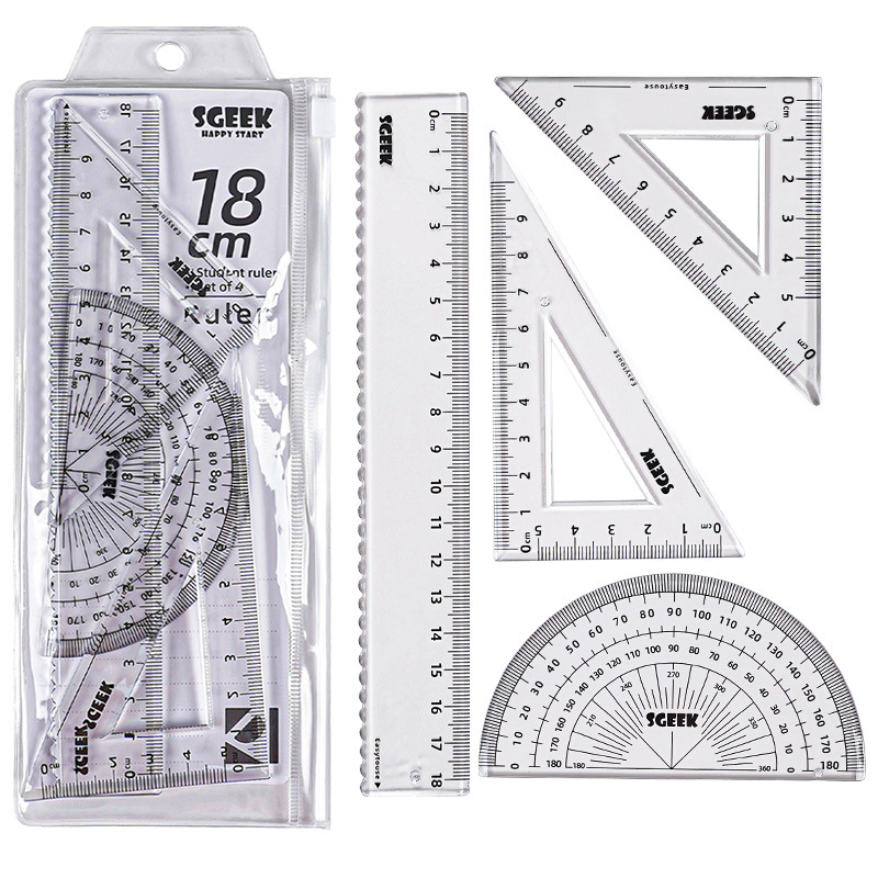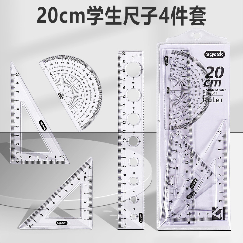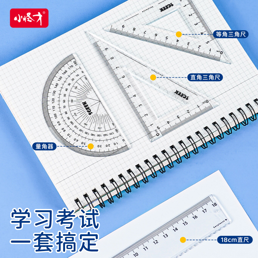小怪才18cm套尺考试专用4件套套尺透明尺子三角尺直尺量角器套装