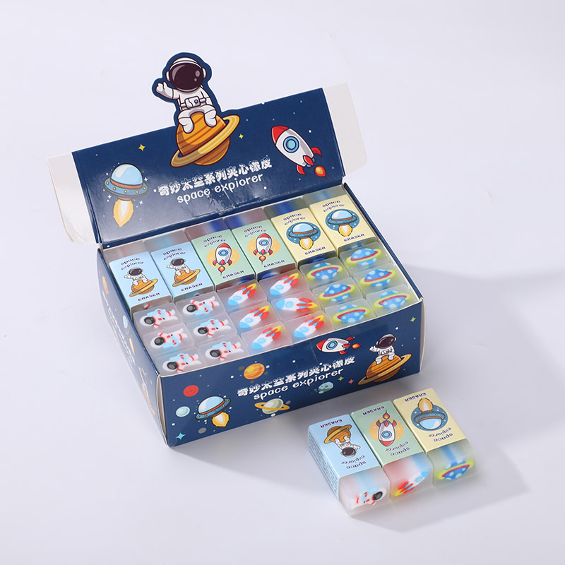 卡通火箭橡皮擦学生文具宇航员飞船动物铅笔擦海豚夹心不掉渣易净