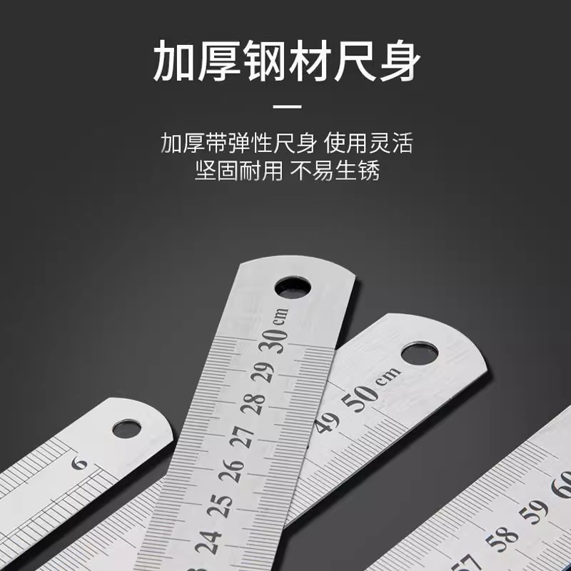 多功能钢尺加厚钢板尺教学生课堂不锈钢直尺绘图测量工具尺子铁尺