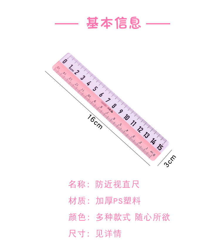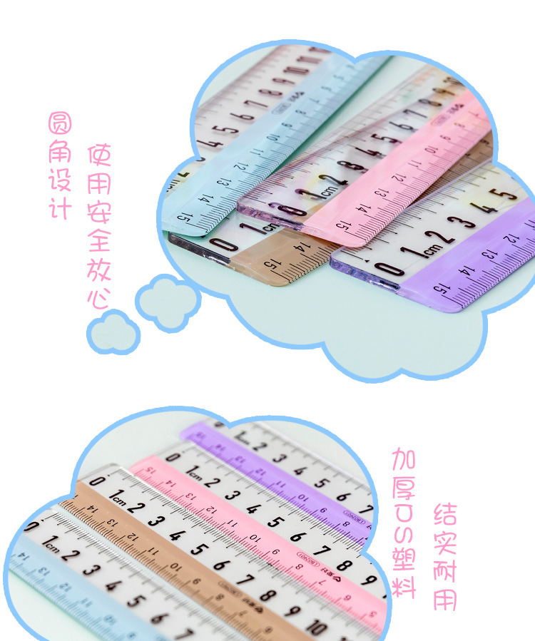 护眼考试绘图绘画刻度尺简约格尺学生文具透明直尺15cm小学生尺子