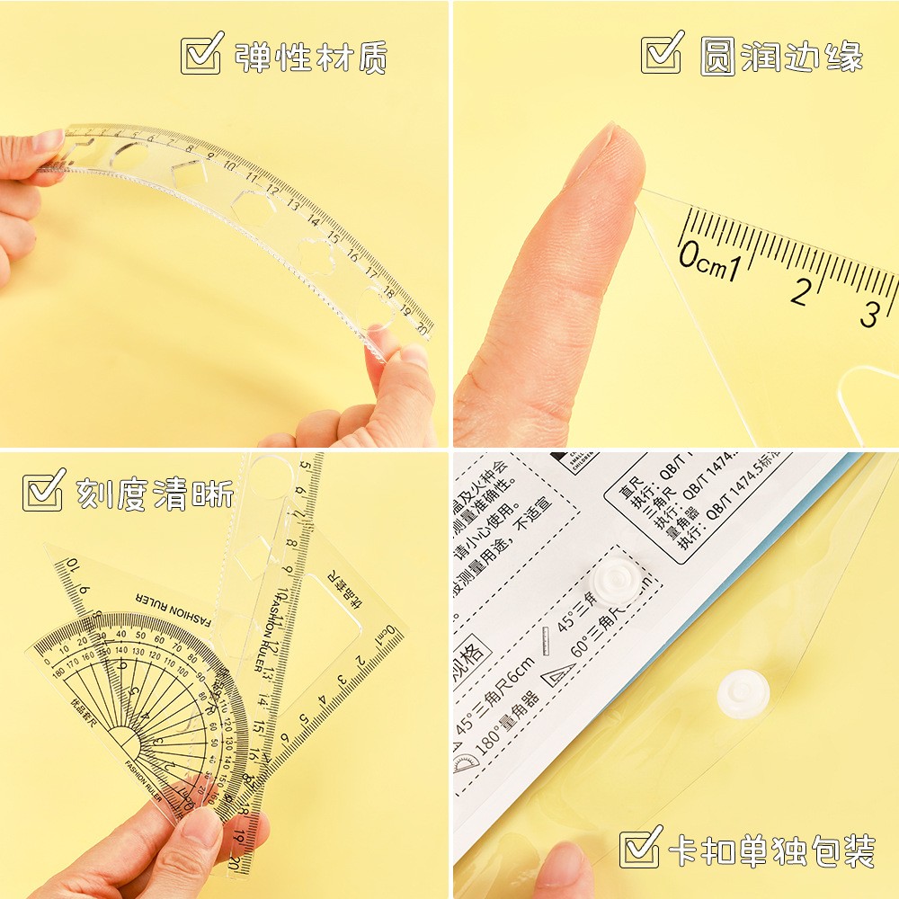 创意励志套尺学生四件套高颜值透明直尺三角板量角器尺子套装