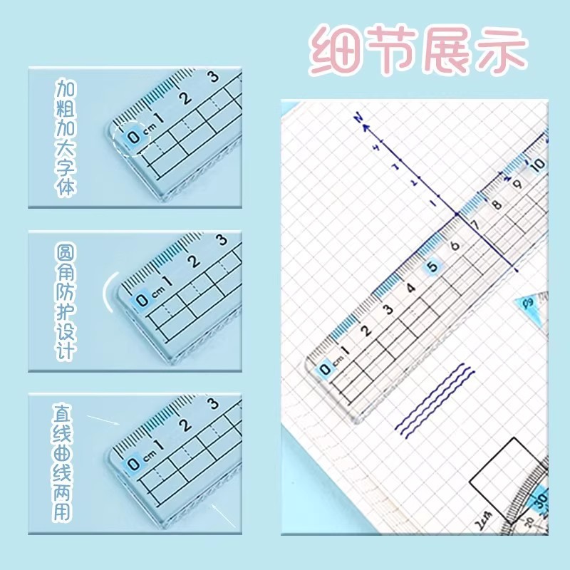 护眼考试绘图绘画刻度尺简约格尺学生文具透明直尺15cm小学生尺子