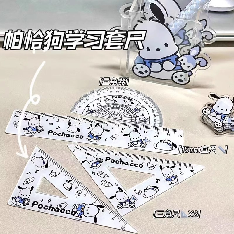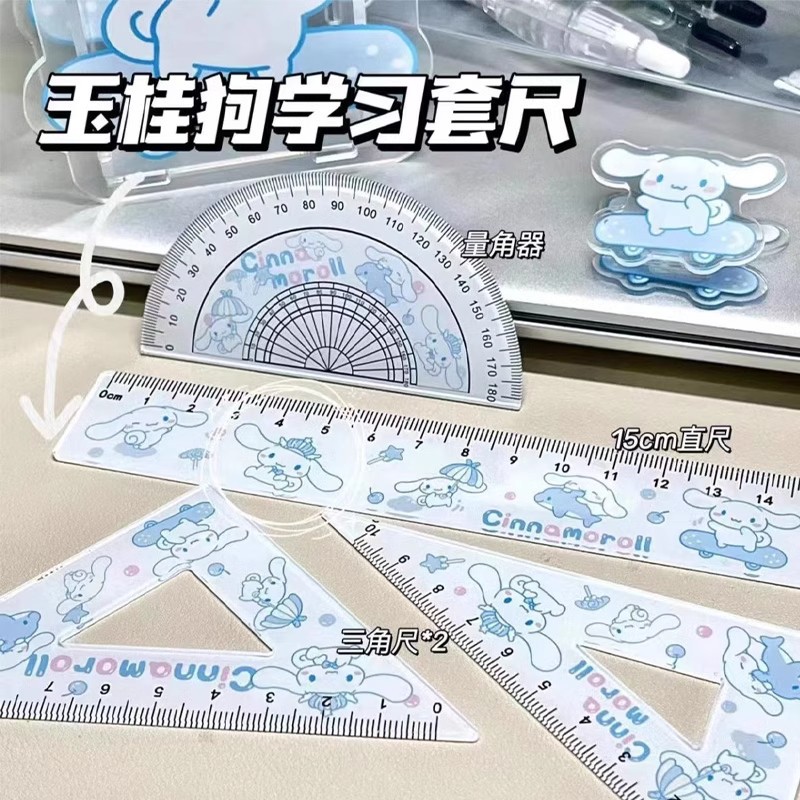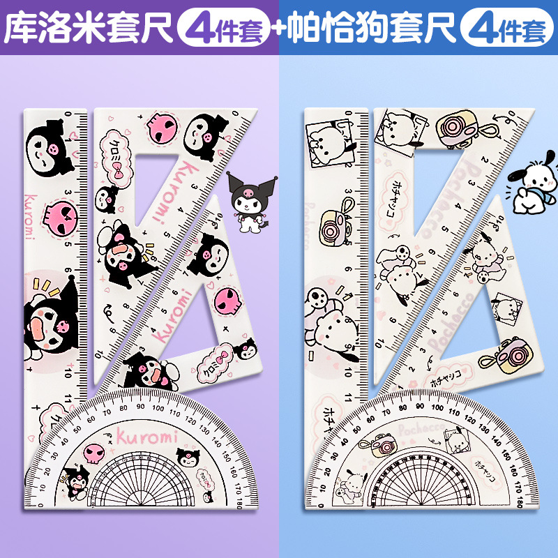 库洛米套装尺子小学生专用直尺三角尺量角器一年级二年级多功能尺