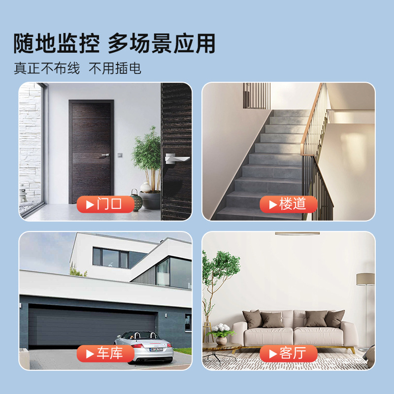 门口摄像头免插电无线 线家用入户楼道4G充电监控免打孔室外手机
