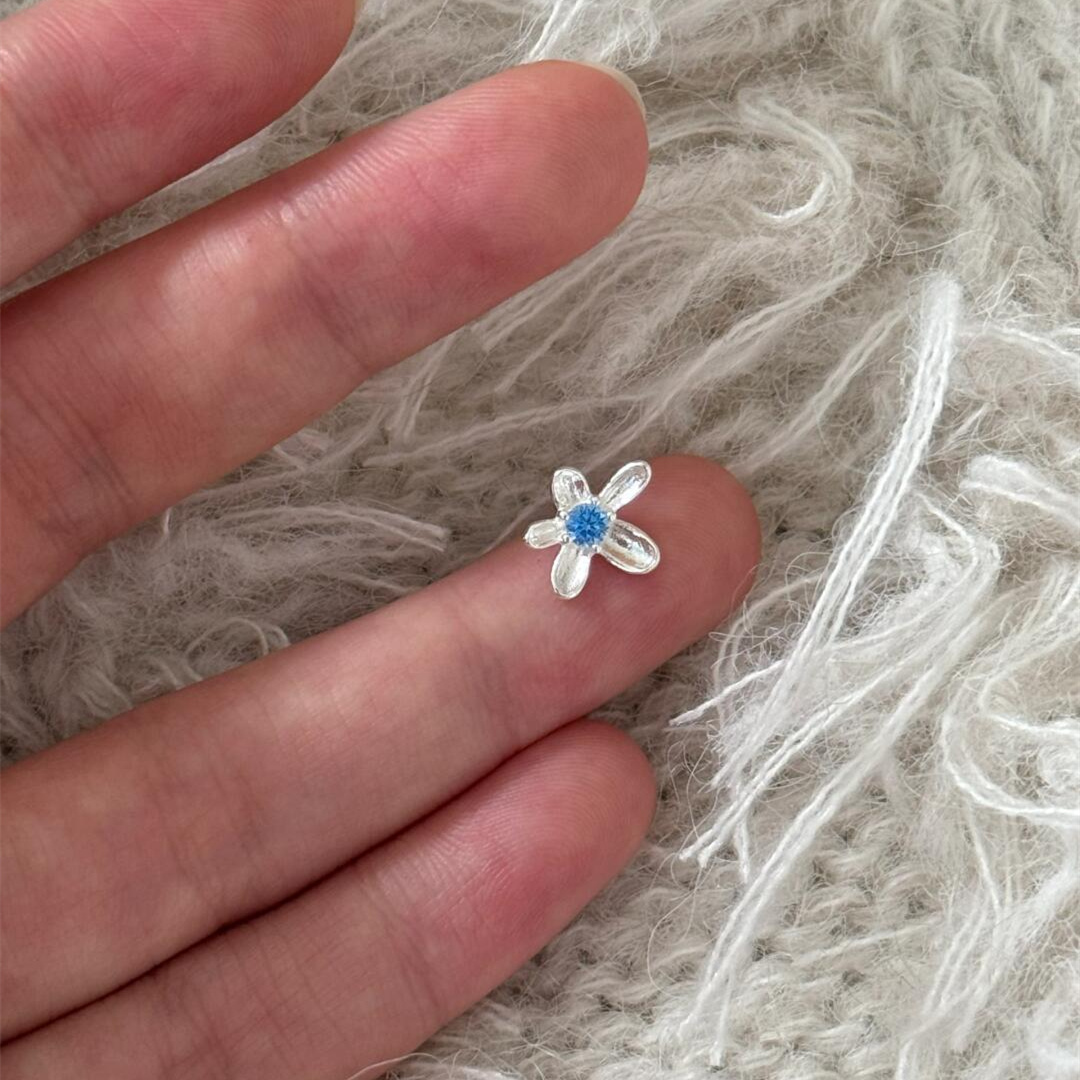 925银甜美五瓣花朵蓝锆石耳钉女简约百搭少女心风耳环春日耳饰