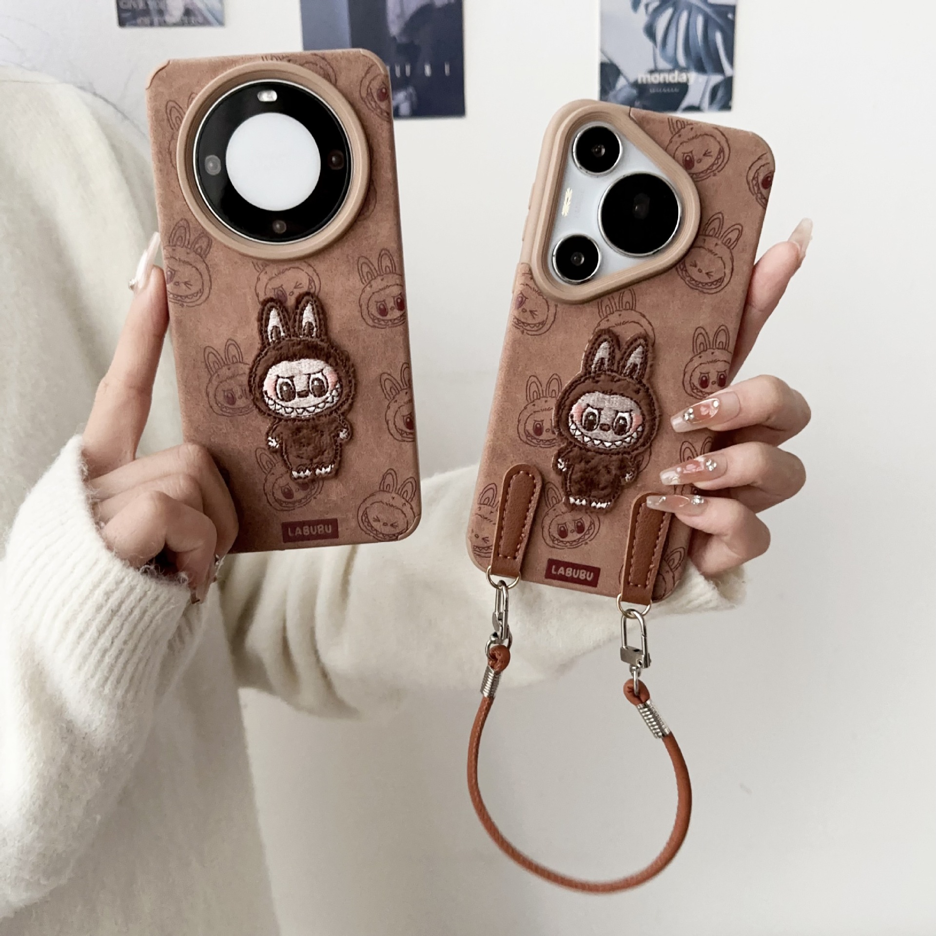 卡通拉布布华为p70苹果16手机壳oppreno12全包vivox100棕色贴皮