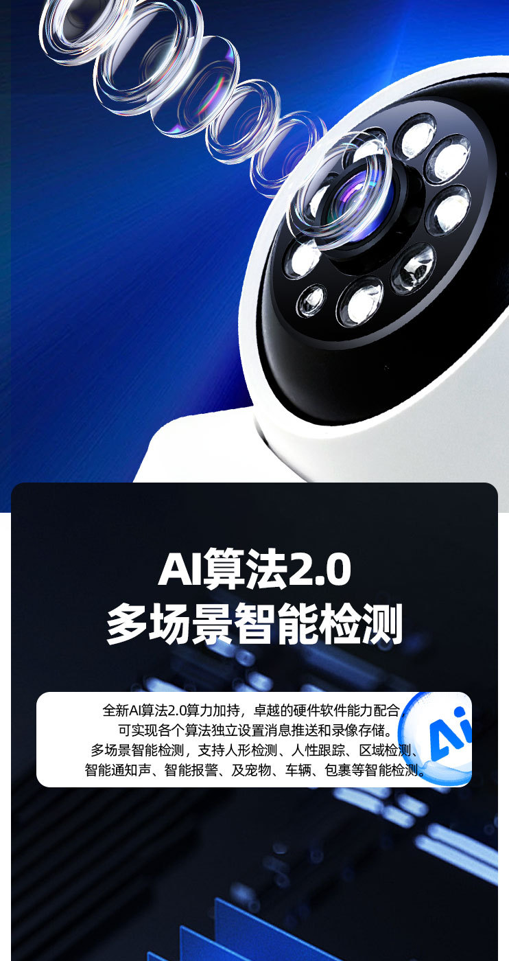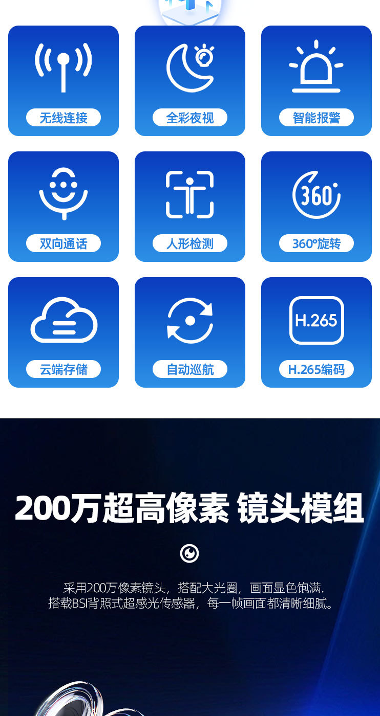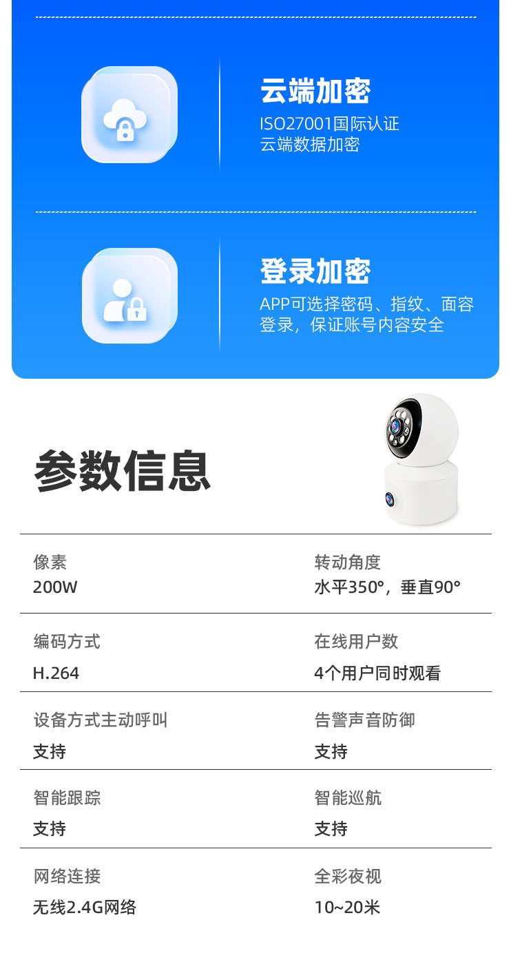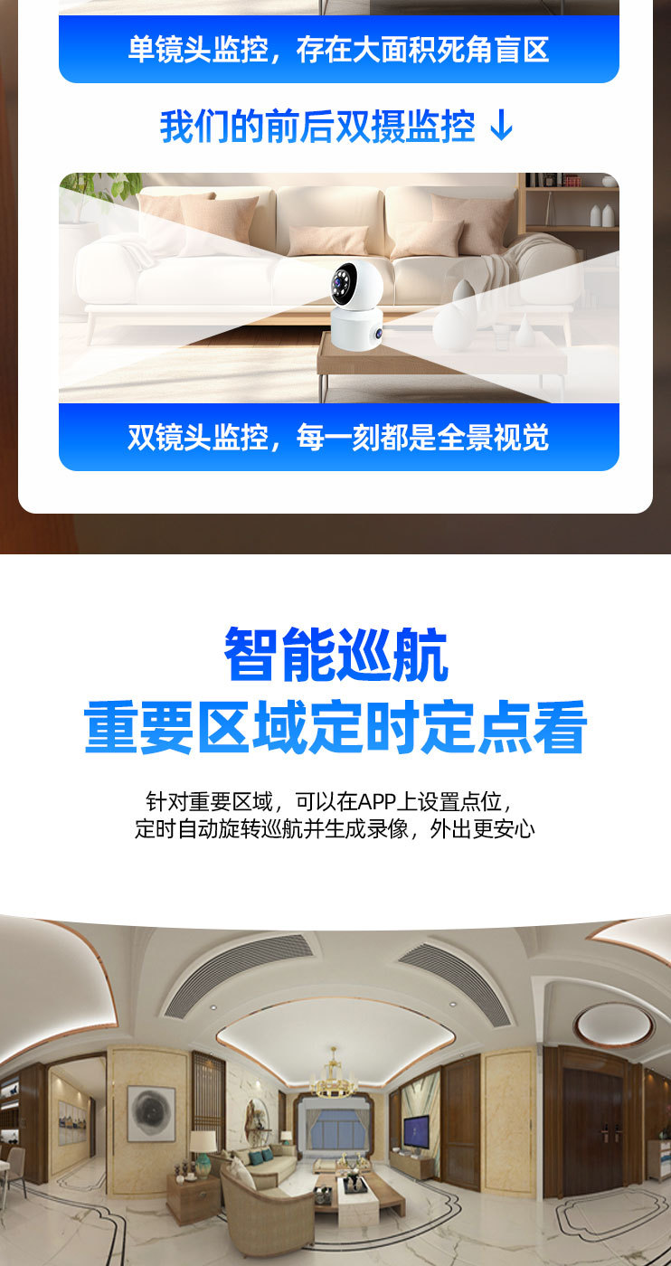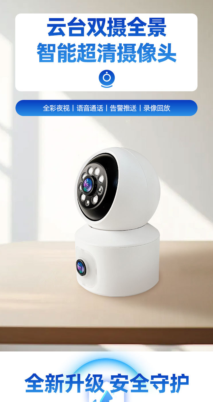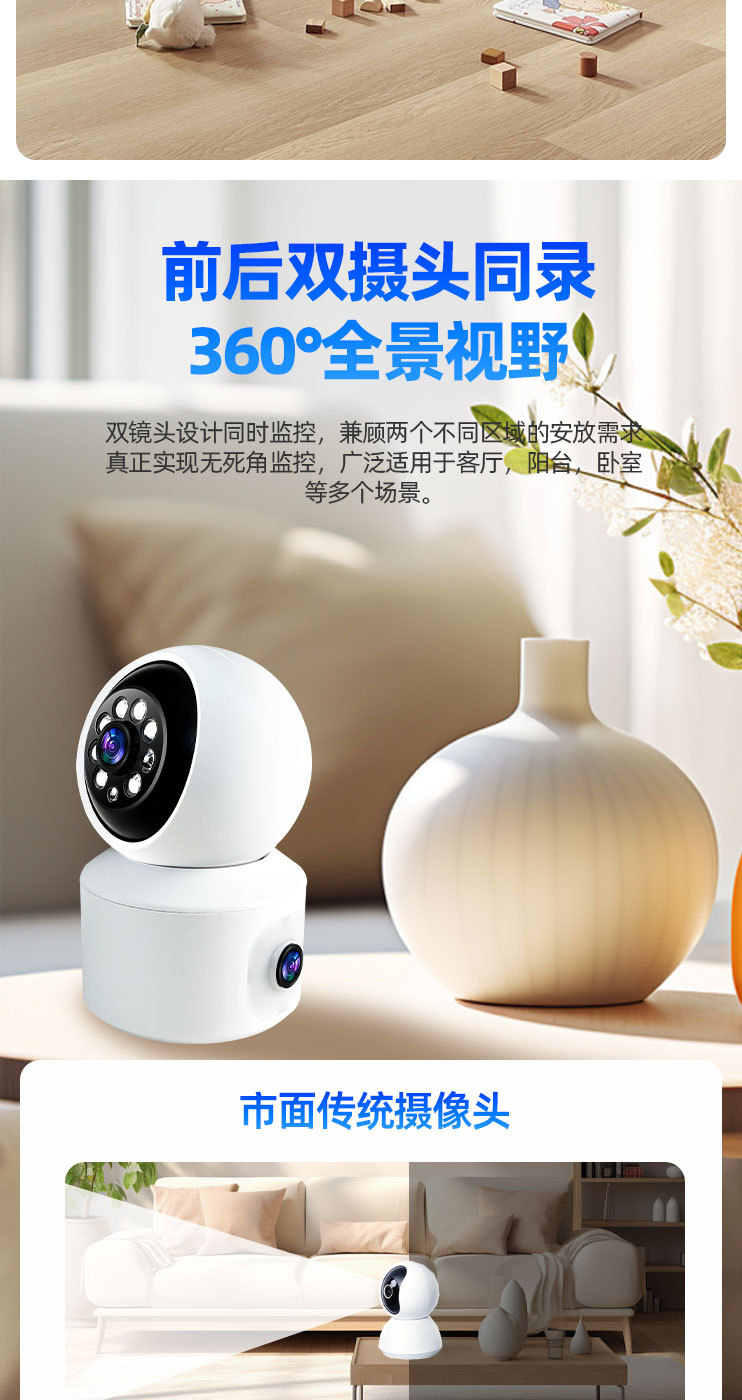 双镜头双画面WiF【360全景旋转+全彩夜视+看清人脸】 2MP