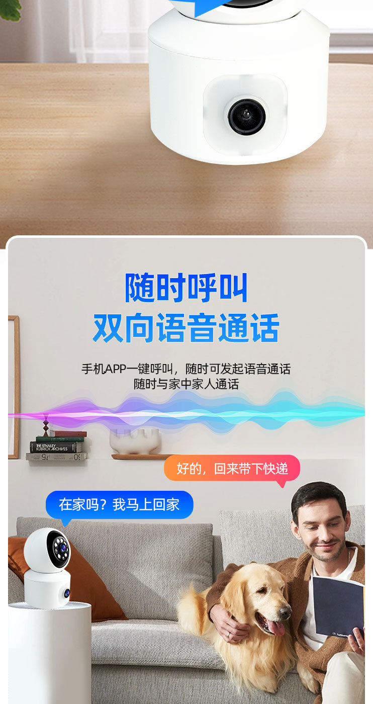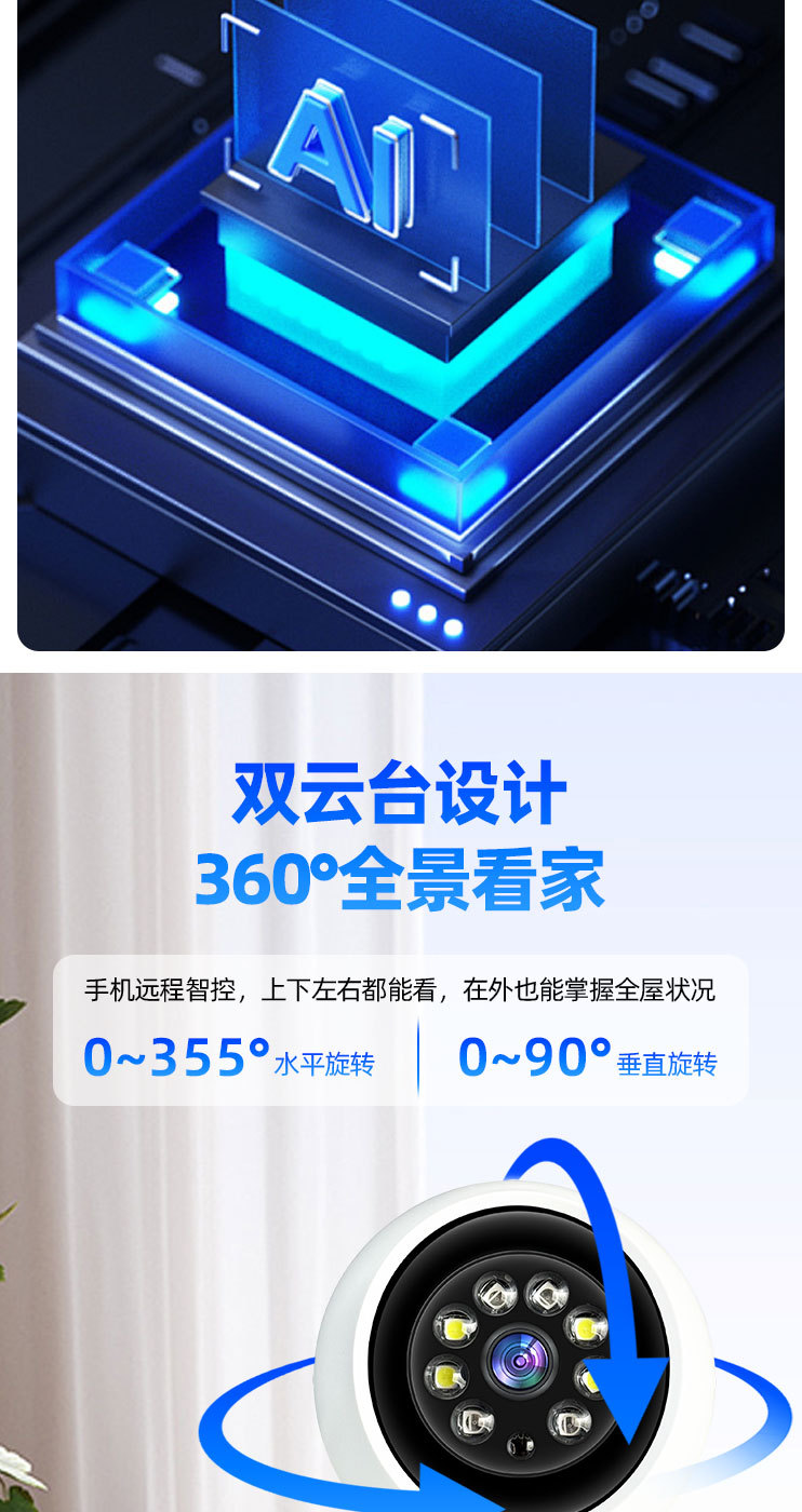 无线wifi家用双摄像头手机远程360度可对讲语音通话夜视高清室内