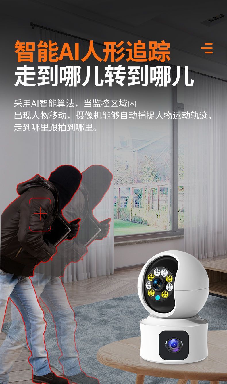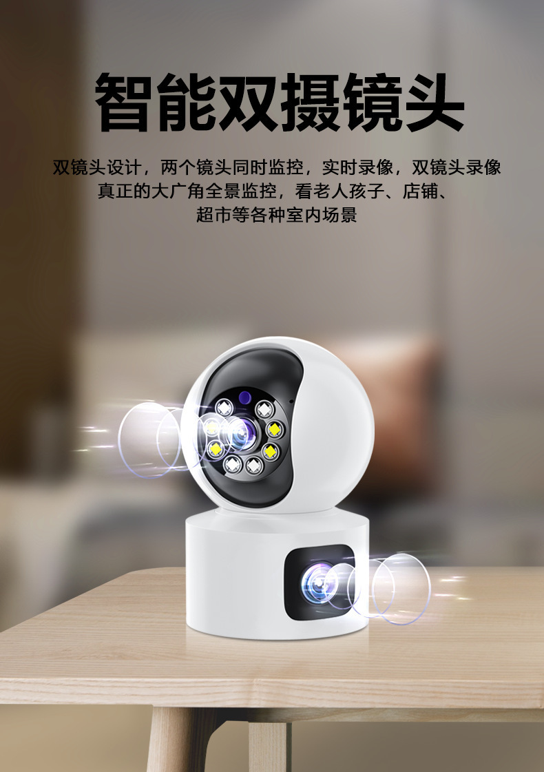 双目双镜头WIFI监控器手机远程摇头机室内监控摄像头广角远程监控