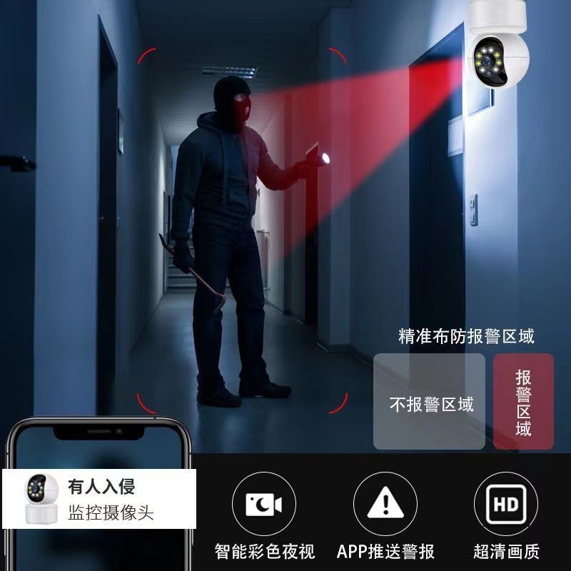 WIFI远程无线控器免打孔智能室内360旋转夜视监控摄像头智能监控