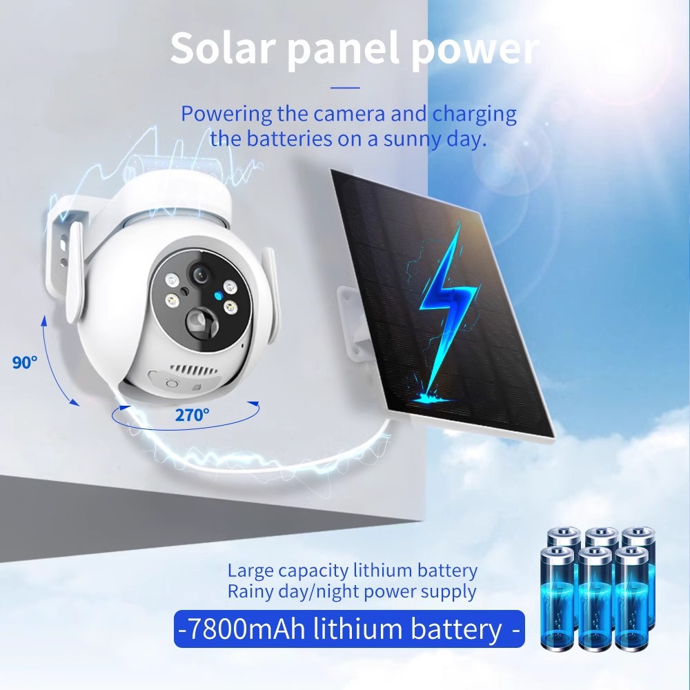 太阳能监控摄像360度无死角家用室外摄影头无电WIFI手机远程高清