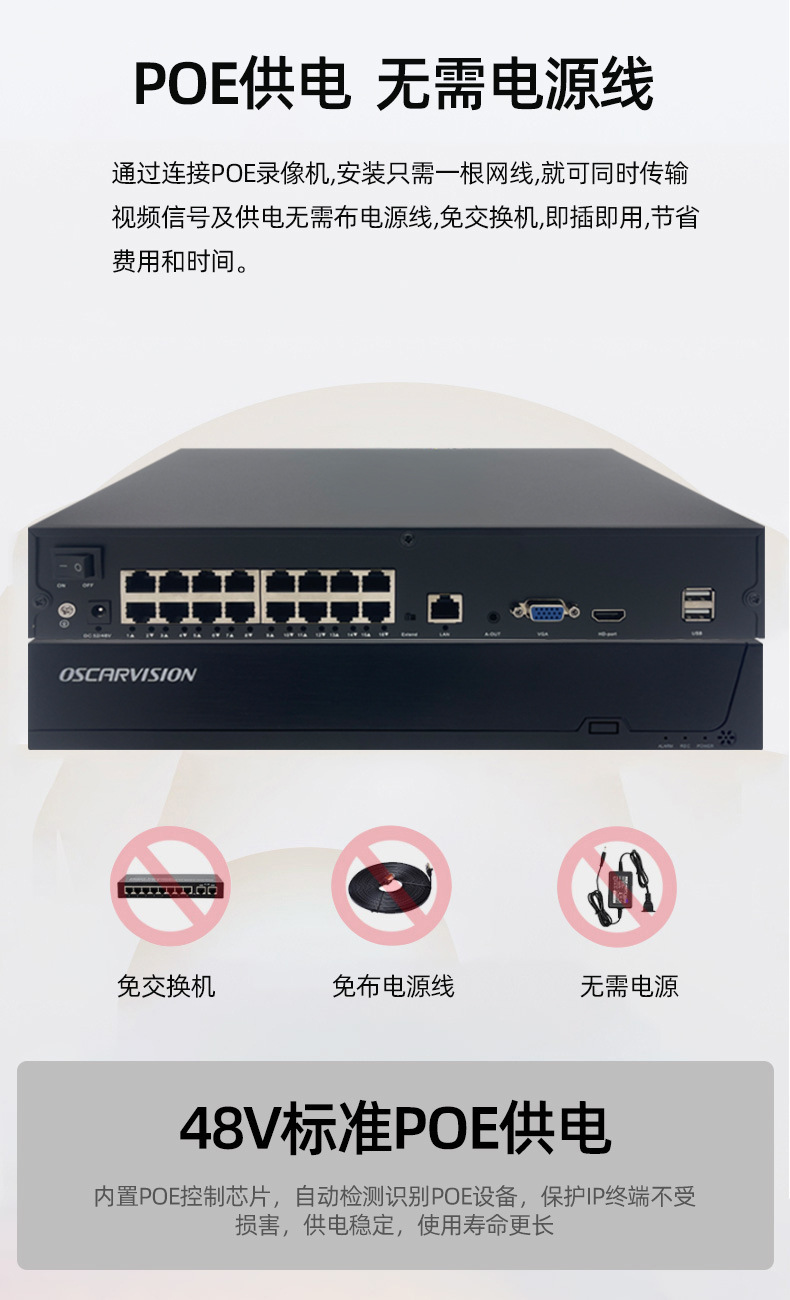 poe硬盘录像机监控16路网络高清摄像头手机远程家用nvr主机