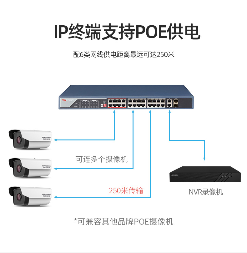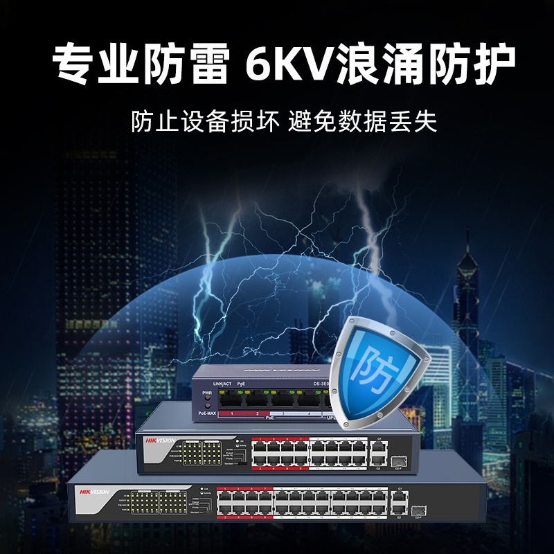 海康威视poe交换机百兆千兆网络监控摄像头室外防雷数据传输设备