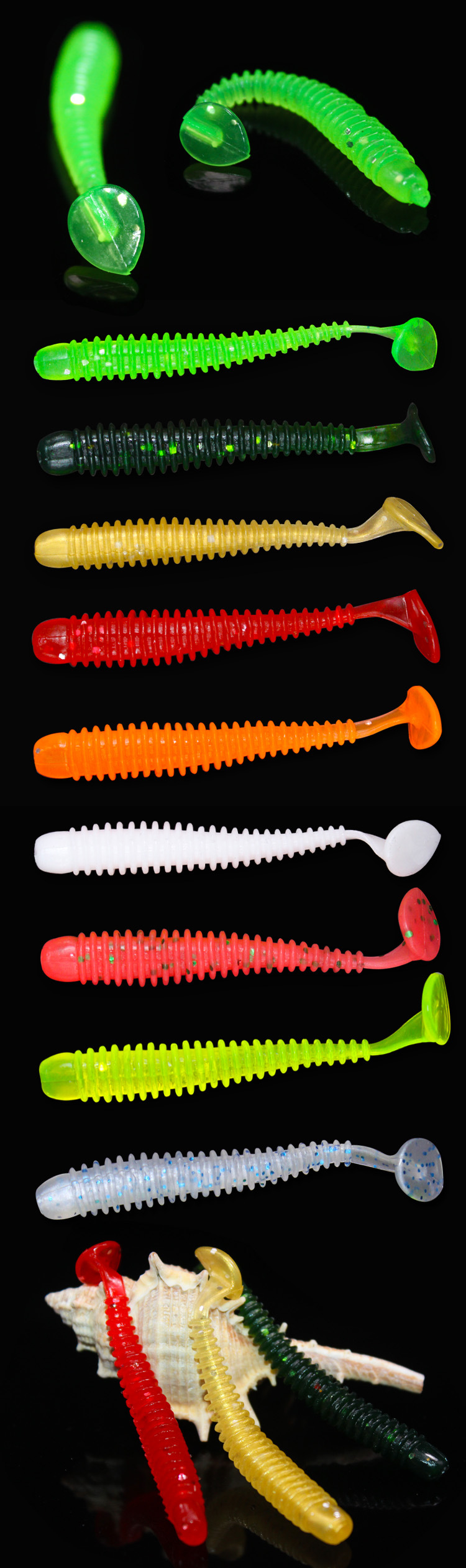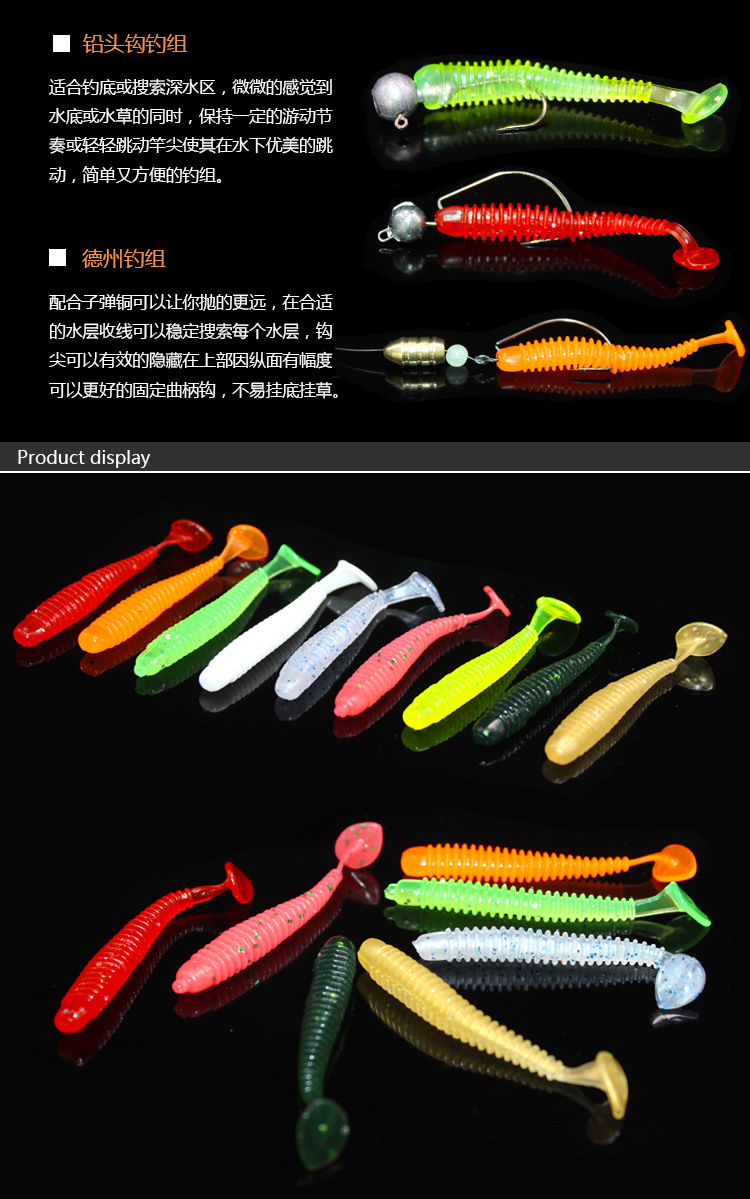 假饵路亚饵硅胶软饵螺旋T尾虫淡水鱼饵黑鲈桂花软虫蛆虫德州钓组
