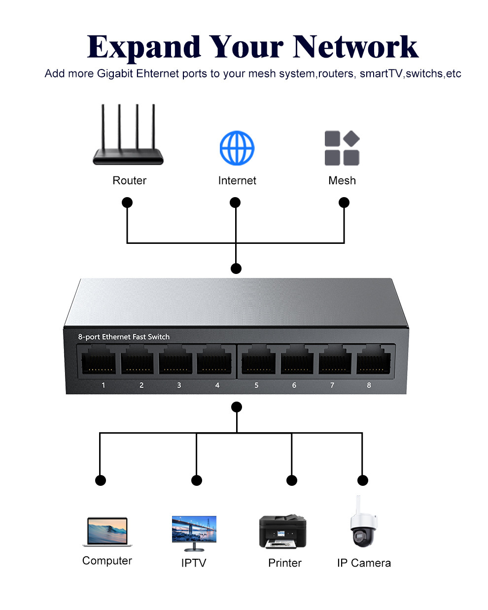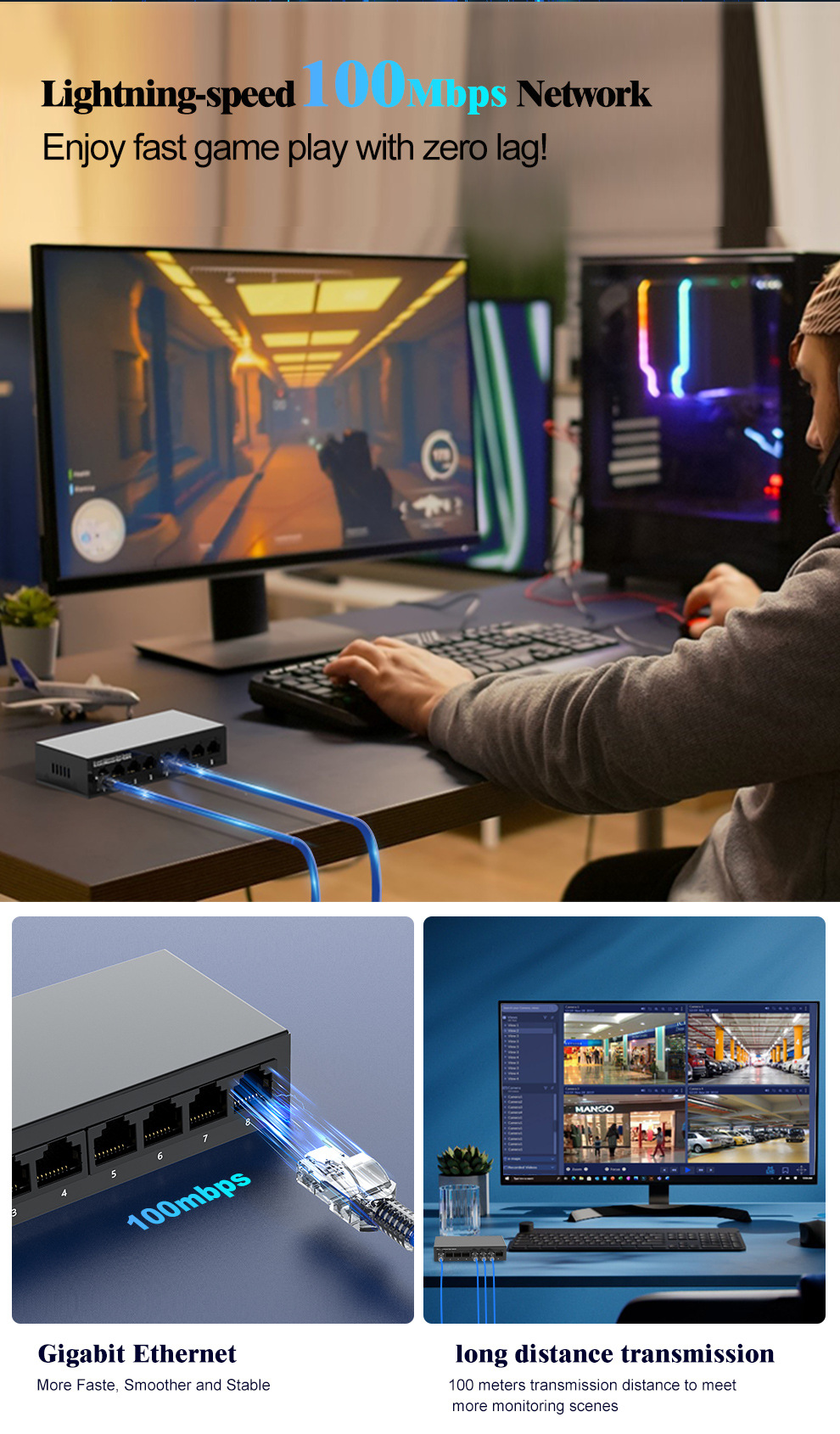 千兆交换机8口百兆交换机分线器网络监控公司家庭宿舍
