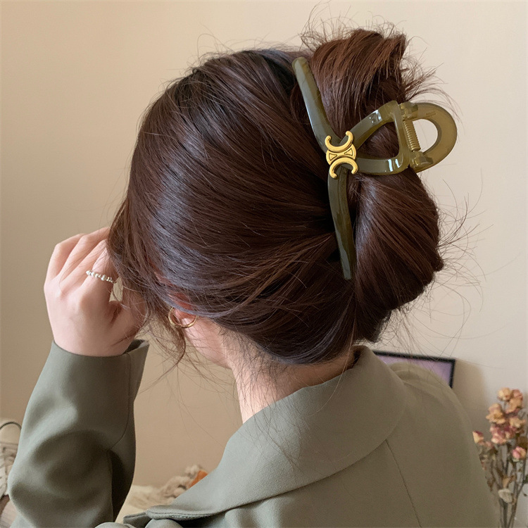 高级感鲨鱼夹发卡复古轻奢字母大号抓夹百搭发夹女后脑勺夹子头饰