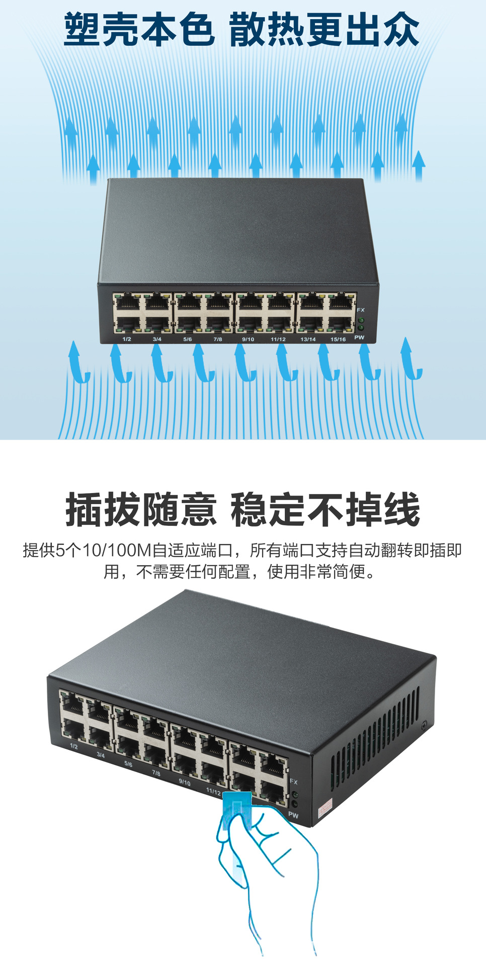 16口千兆交换机网络分流器家用路由器宽带网线交换机监控集线器