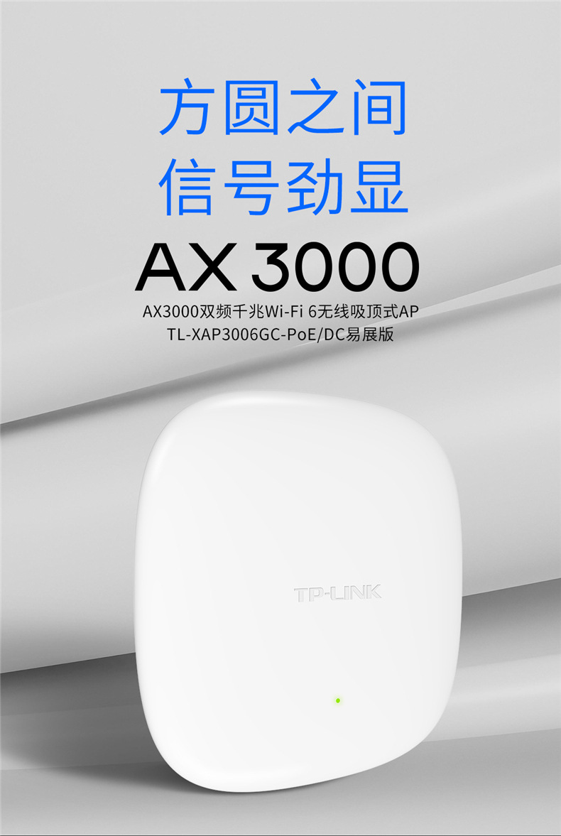 TP-LINKTL-XAP3006GC-PoE/DC易展版AX3000千兆Wi-Fi6无线吸顶AP