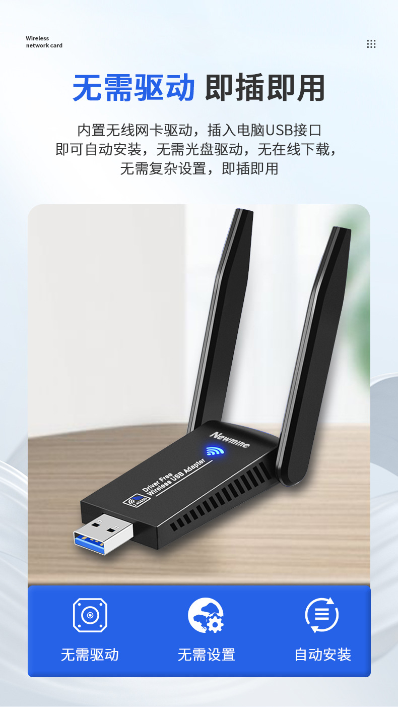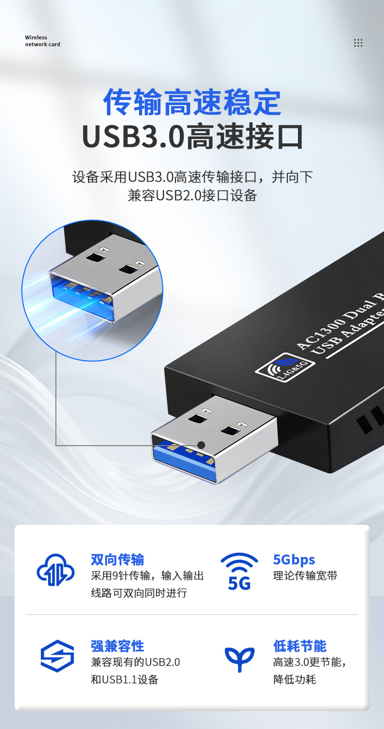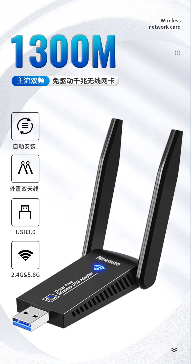D1302无线网卡1300M免驱版USB无线网卡千兆5G双频台式机