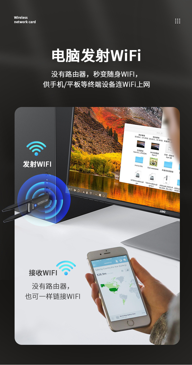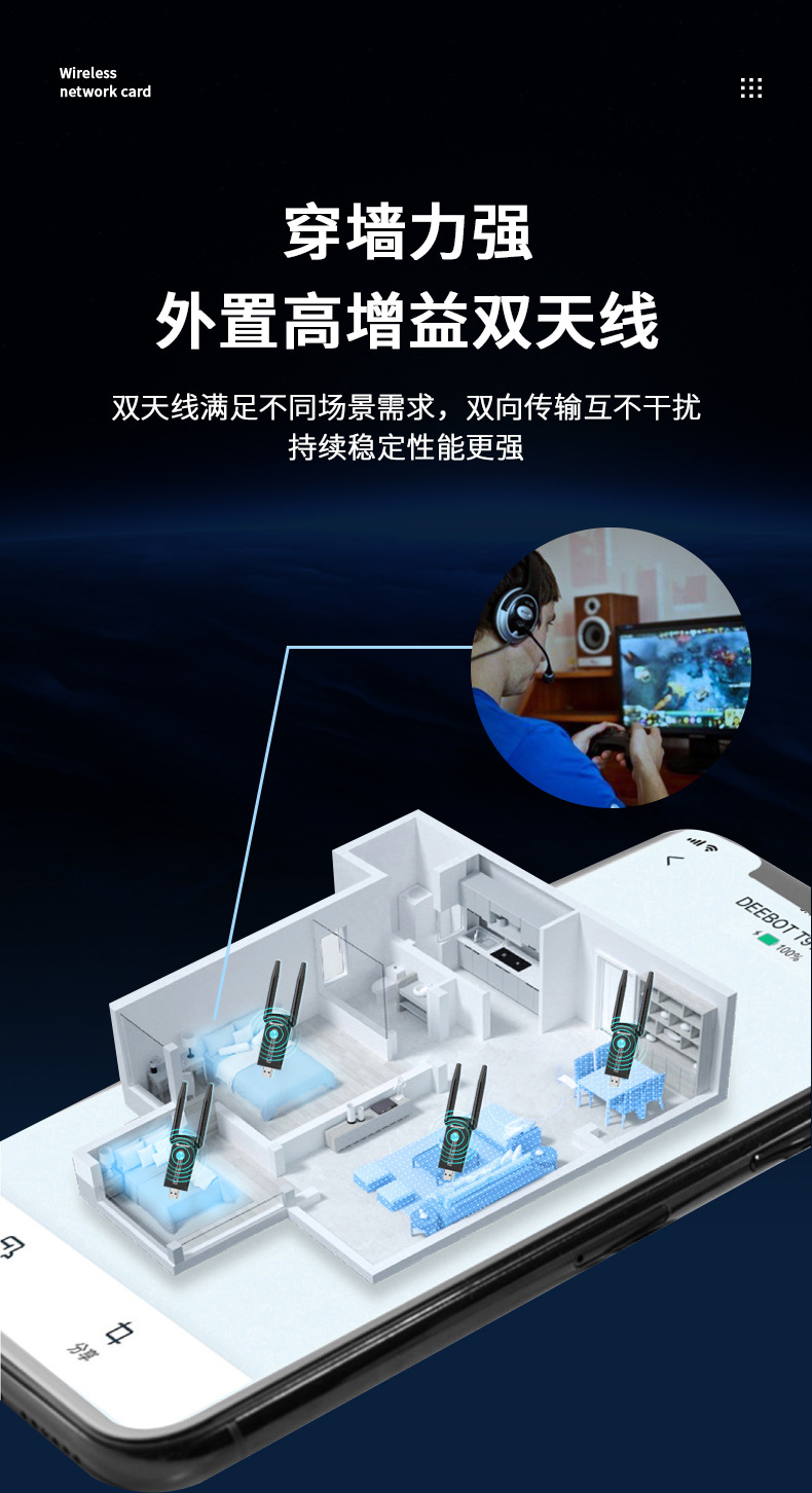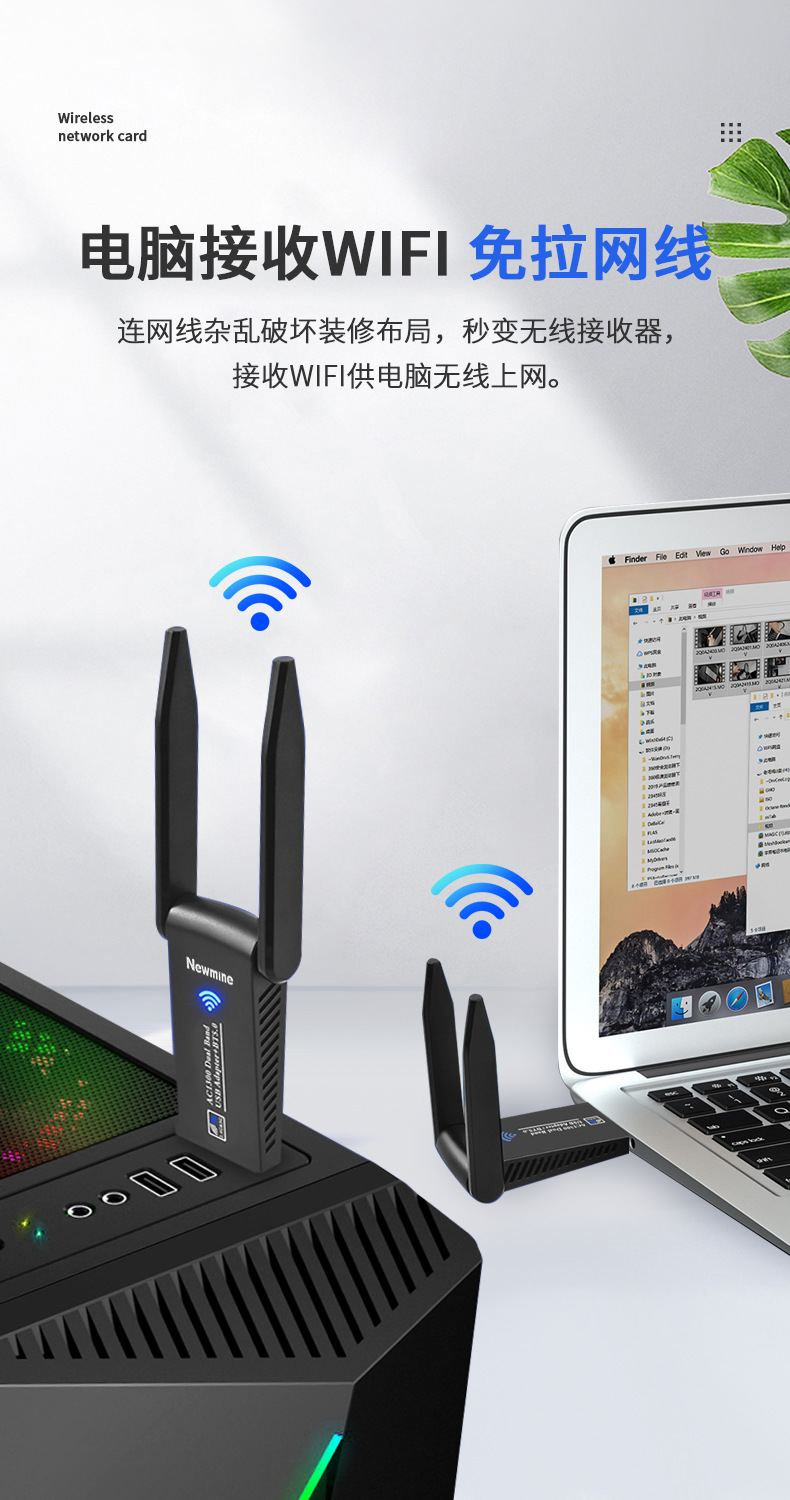 D1302无线网卡1300M免驱版USB无线网卡千兆5G双频台式机