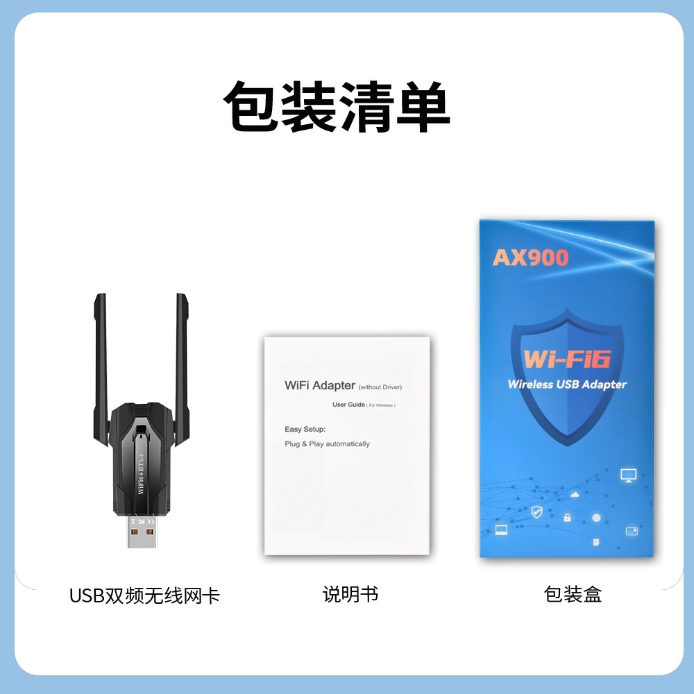 AX900无线网卡WiFi6蓝牙5.4双频USB接收AP发射台式机千兆高速传输