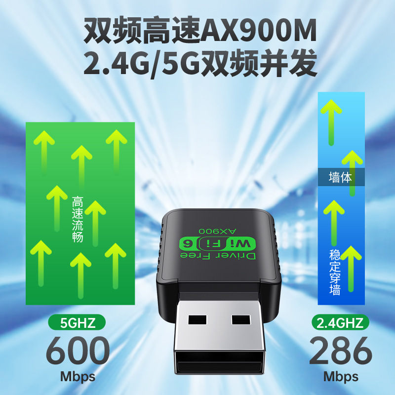 5g双频900M无线网卡WiFi6免驱台式电脑USB网络接收发射器