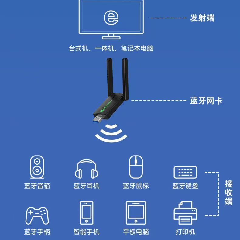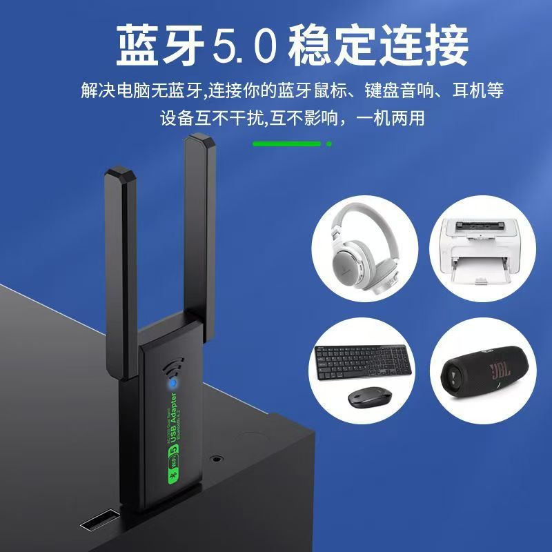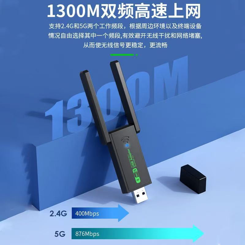 免驱动无线网卡1300M电脑5G接收器笔记本WiFi蓝牙5.0二合一双频5G