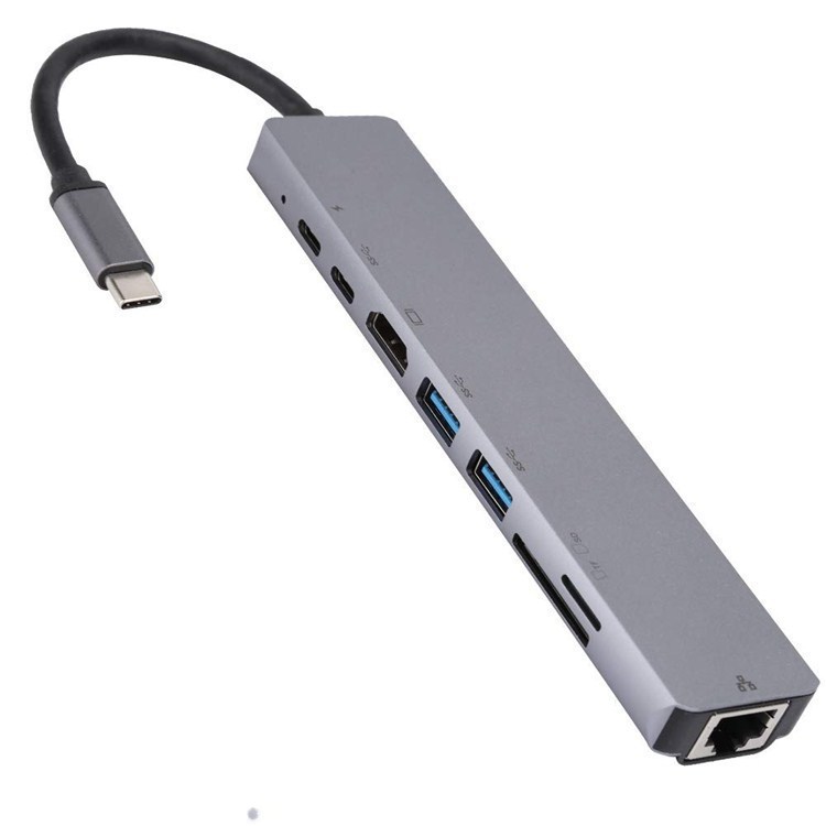 type-c转HDMIUSB3.0转RJ45网卡多功能扩展坞PD供电8合1集线器