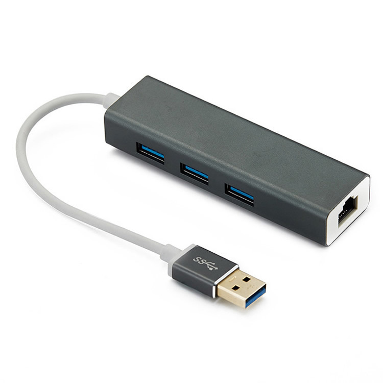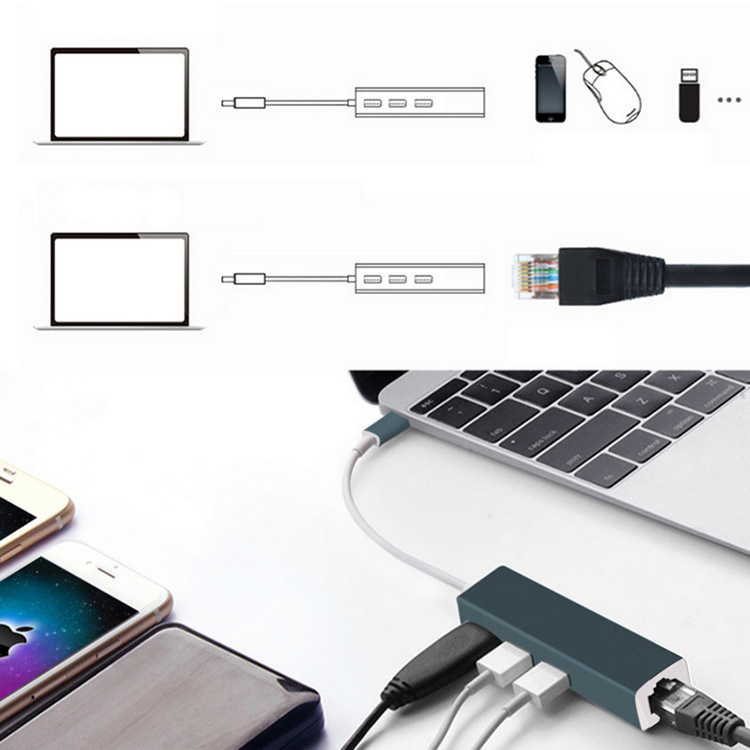 type-c千兆网卡带线USB3.0转rj45HUB扩展坞外置有线网卡铝合金