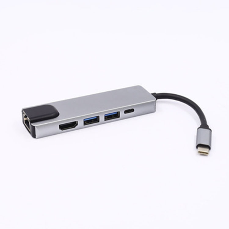 TYPE-C转HDMI4K五合一百兆网卡多功能读卡器扩展坞USB-C5IN1
