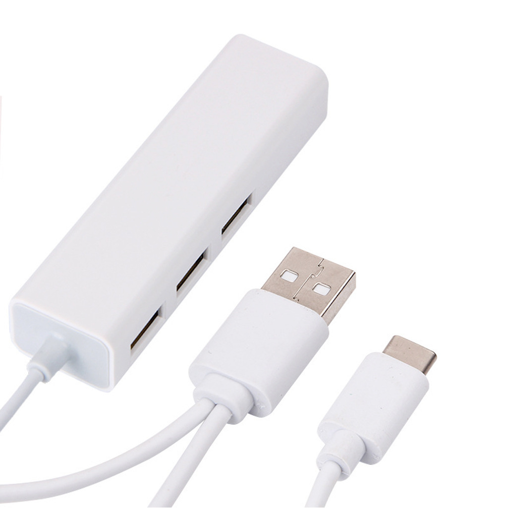 USB3.1Type-C双插头USB2.0扩展集线器3口HUB加网卡网络接口RJ45