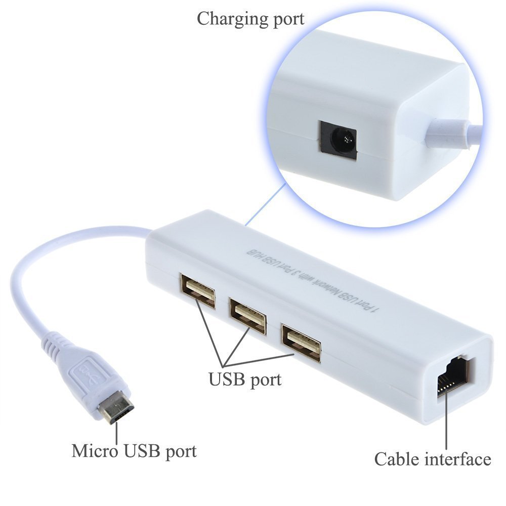 microusb百兆免驱网卡安卓平板电脑带3口HUB分线器转有线RJ45