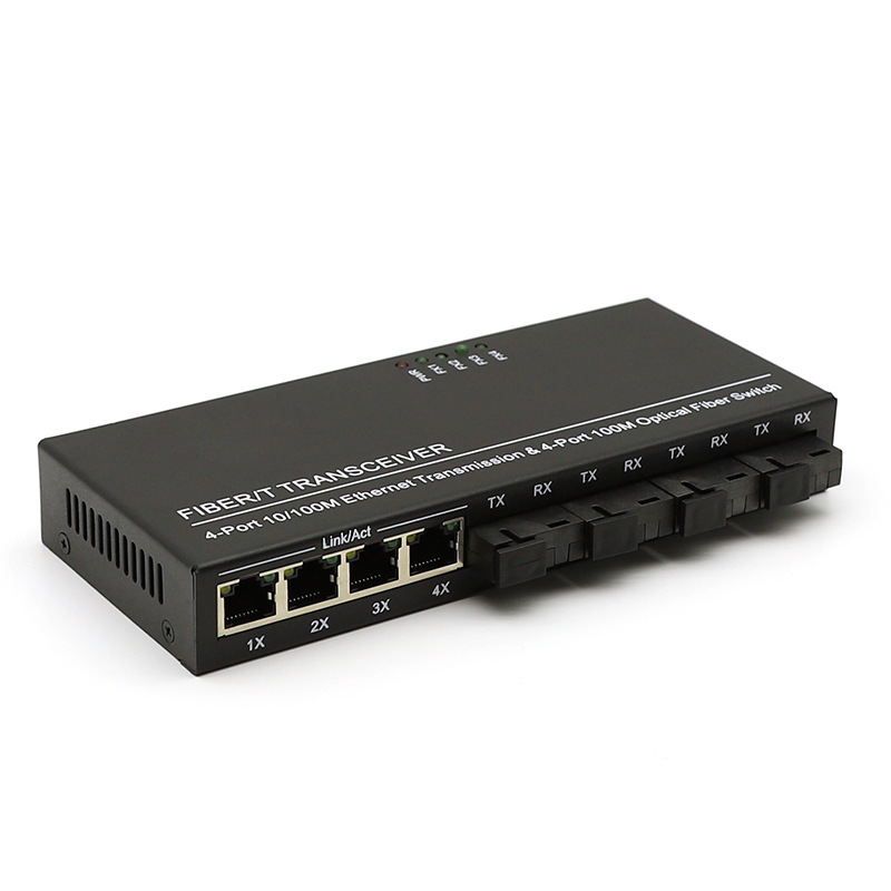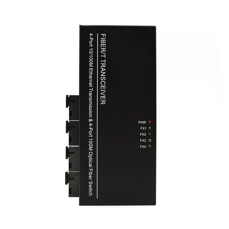 百兆4光4电光纤收发器光电转换器可汇聚级联4个光口4个电口一台