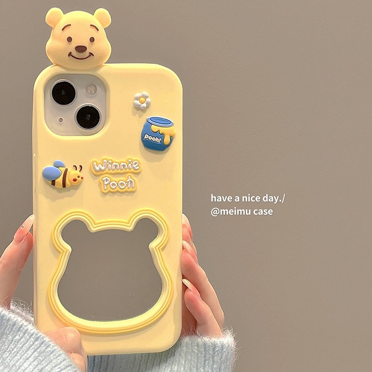 超火卡通维尼熊噗噗镜子适用iPhone15promax苹果14手机壳13硅胶12