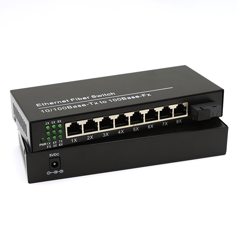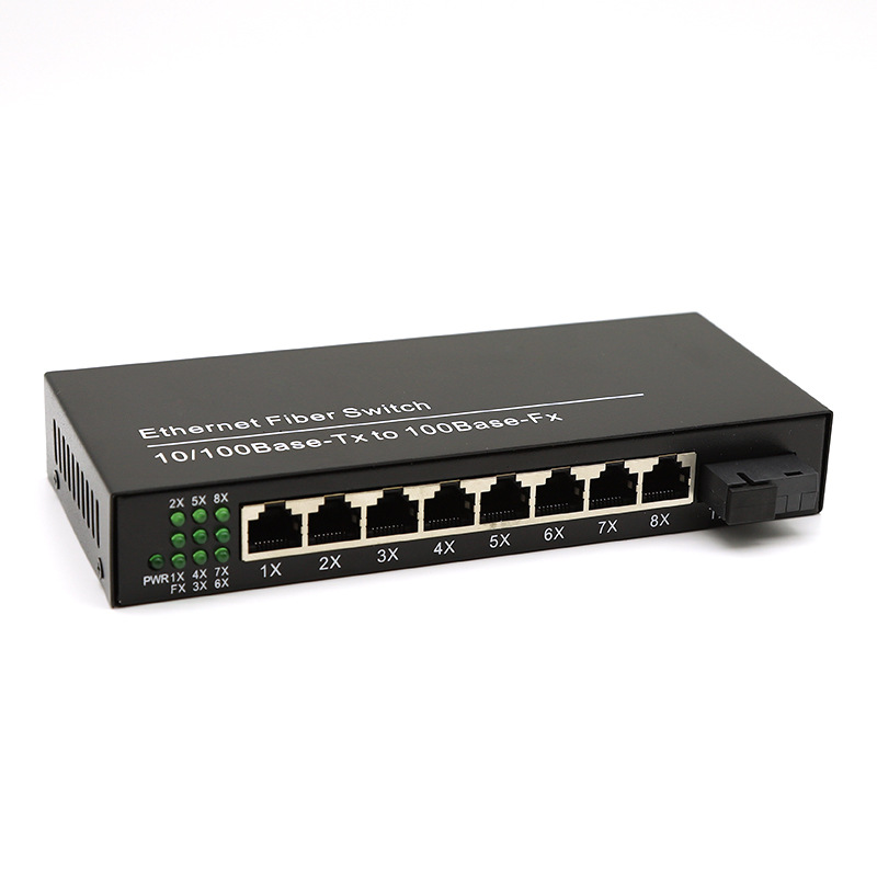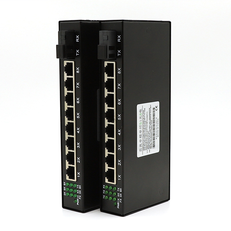 1光8电百兆单模单纤光纤收发器百万高清摄像机AB端一对