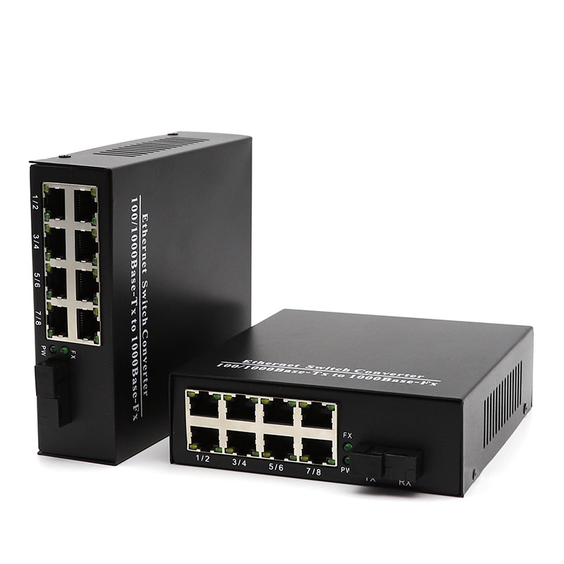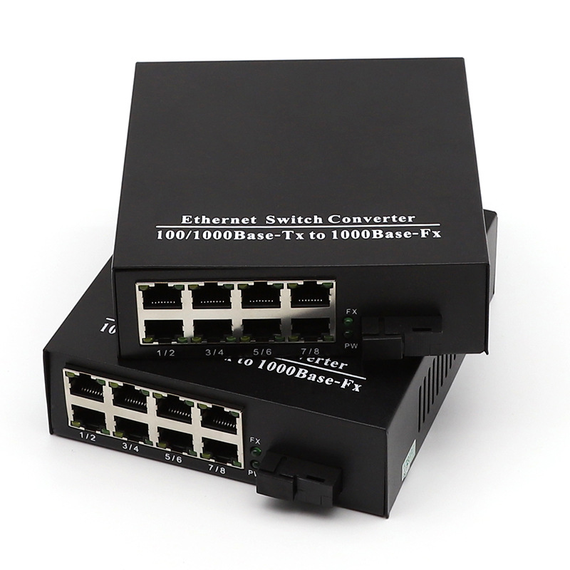 1光8电千兆单模单纤光纤收发器1000M光电转换器一对