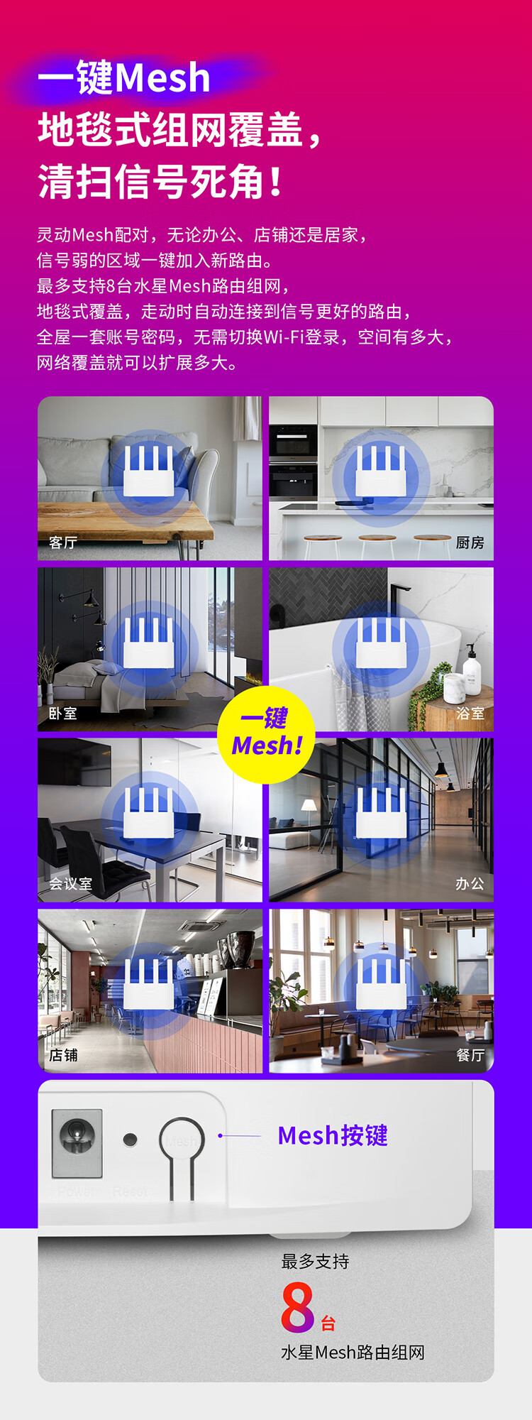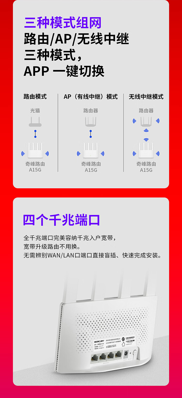 水星奇峰A15G无线路由器AX1500wifi6家用全屋覆盖mesh千兆路由器