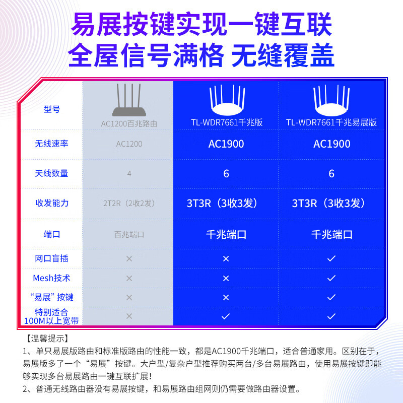 TP千兆端口1900M无线路由器TL-WDR7661千兆易展版家用WiFi路由器