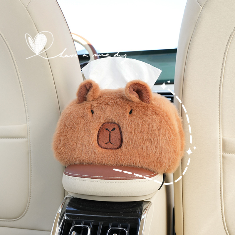 卡皮巴拉车载纸巾盒 多功能车用扶手箱抽纸盒 卡通挂式纸巾盒