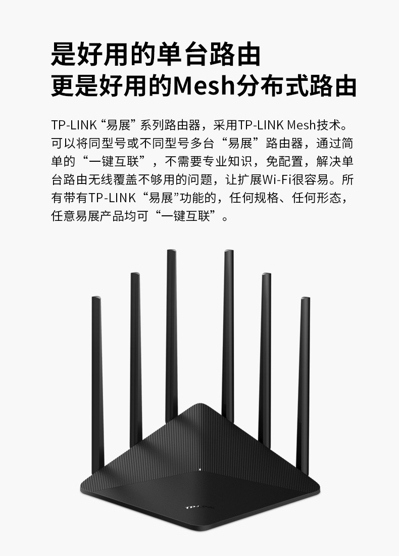 TP-LINKAC1900全千兆mesh无线路由器5G高速TL-WDR7660千兆易展版