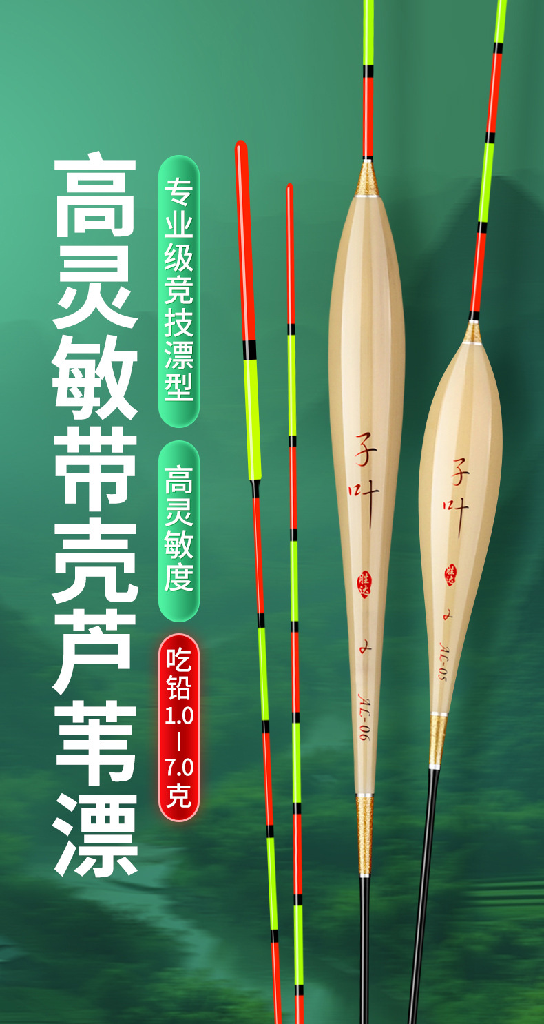 精品竞技带壳芦苇浮漂高灵敏醒目加粗抗走水行程鲫鲤大物综合鱼漂