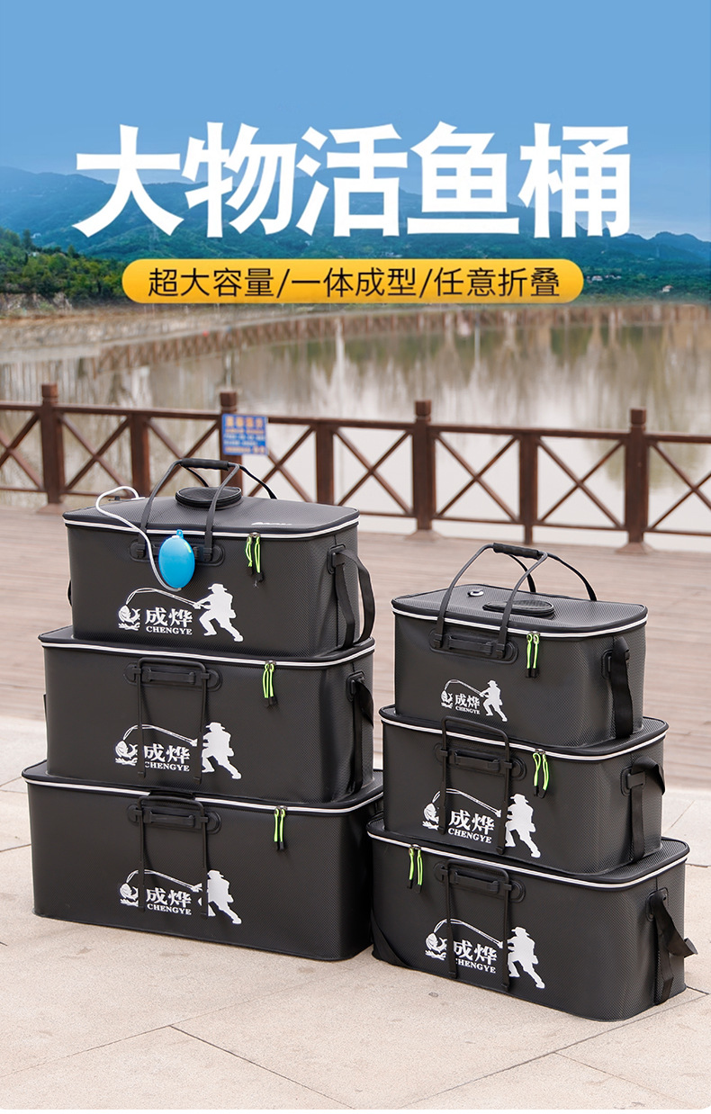 折叠鱼桶加厚eva活鱼桶多功能钓箱带侧兜大物活鱼桶