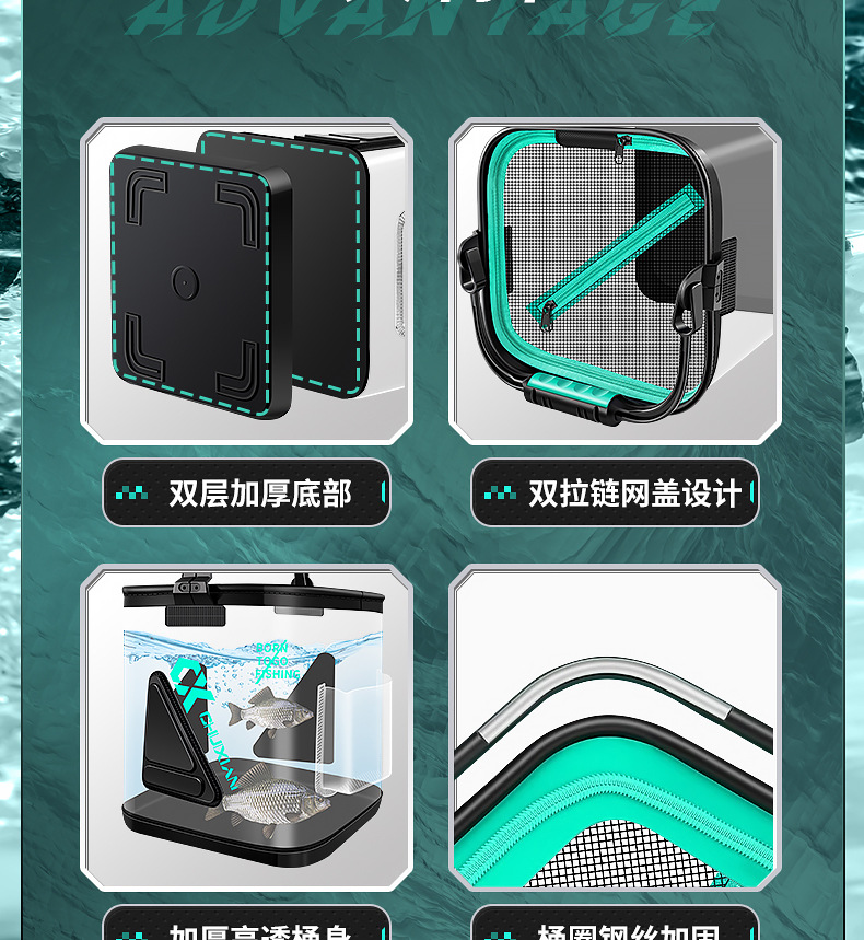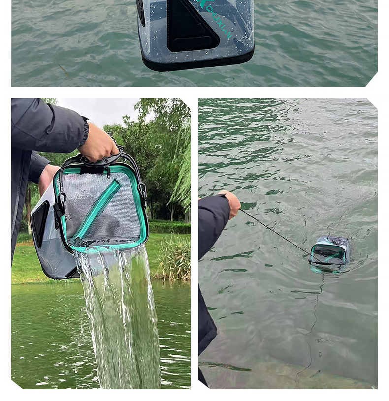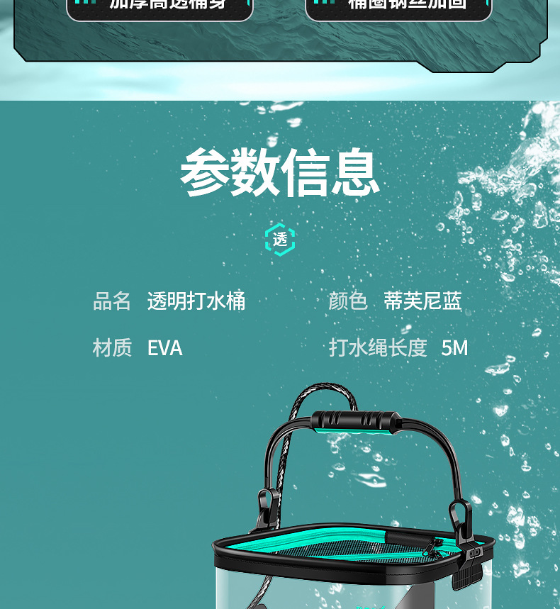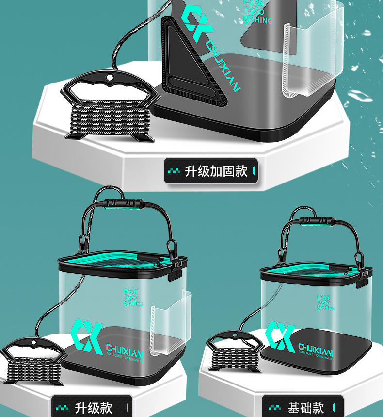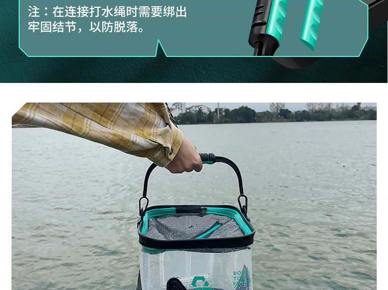 新款活鱼桶路亚透明鱼桶可折叠手提野钓鱼护装鱼桶户外鱼箱打水桶