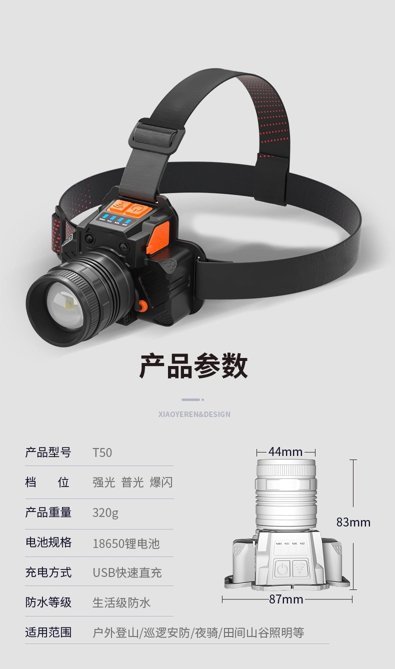新款led手势感应头灯旋转变焦头灯USB充电强光户外夜钓防水小头灯