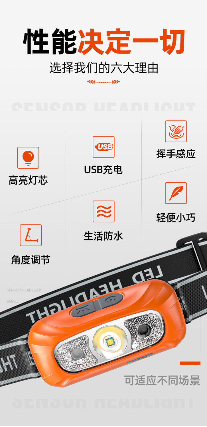户外专用感应led头灯野外强光高流明长续航锂电钓鱼灯夜钓灯矿灯