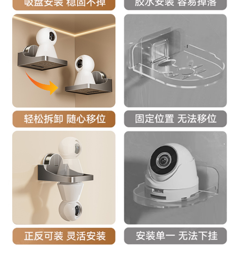 奶白【吸盘】摄像头支架+某米底座(可平放+倒放)