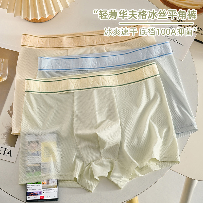 男士内裤男夏冰丝抑菌透气平角裤男生四角裤