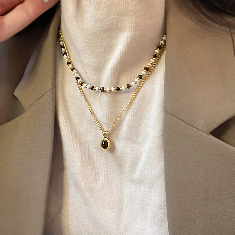 双层叠戴虎眼石项链女款新款秋冬高级感锁骨链轻奢网红卫衣链