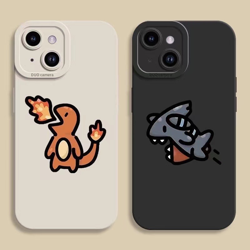 小火龙小鲨鱼苹果15手机壳适用iPhone13/14Promax情侣壳11直边12