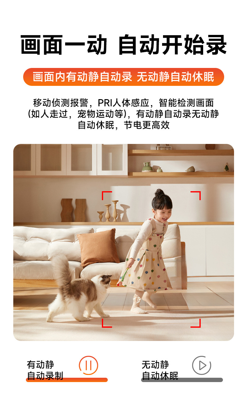 家用监控摄像头无线wifi可以连手机远程室内免插电高清多场景适用